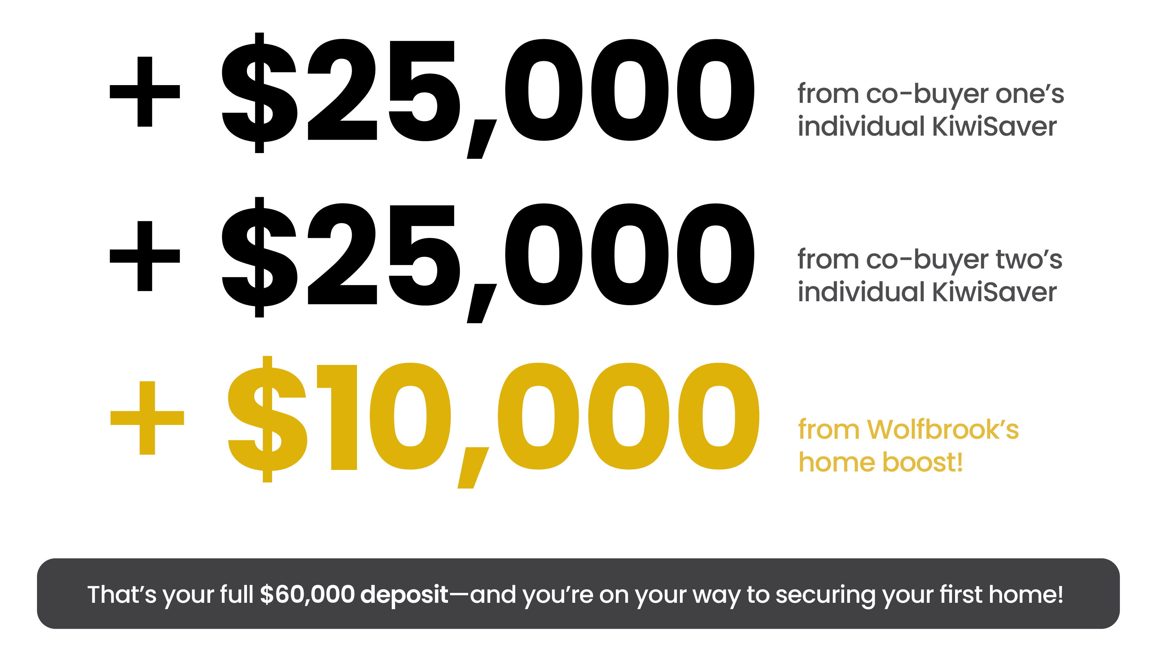 With conjoint KiwiSaver contributions and Wolfbrook’s limited-time home boost, you can take a big step toward homeownership this March.